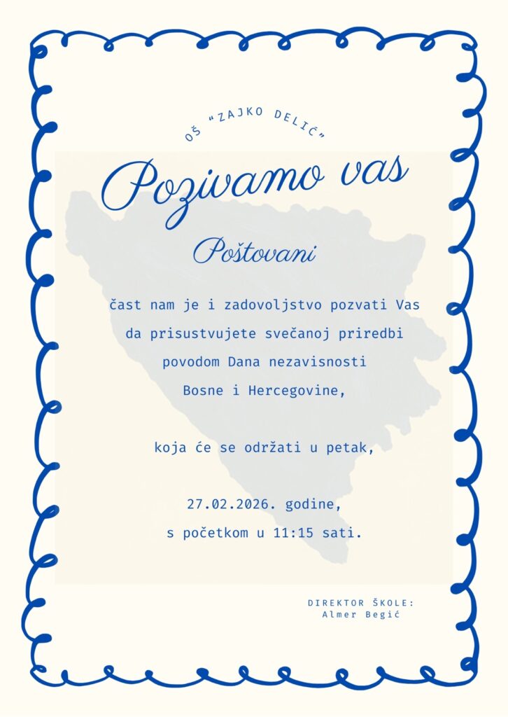 FebruarDan nezavisnosti BiH – 1. mart Skola_oszd2 hours ago2 hours ago01 mins Post navigation Previous: ODLUKA o izboru najpovoljnijeg ponuđača, usluga dostavljanje pripremljene hrane